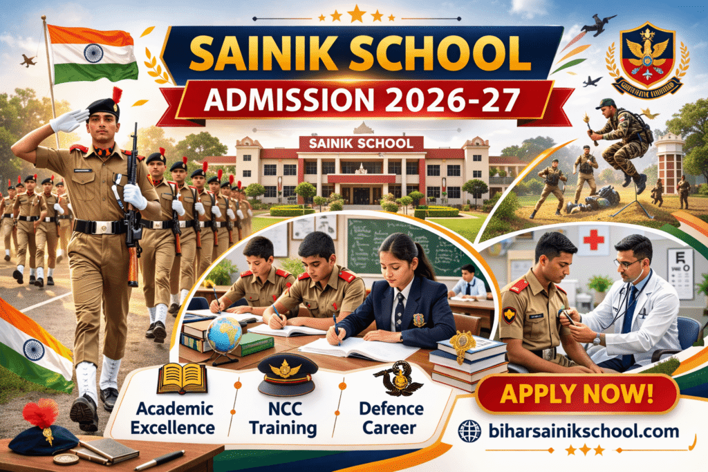 Sainik School Admission 2026-27, Bihar Sainik School Admission, AISSEE 2026-27, Sainik School Nalanda, Sainik School Gopalganj, New Sainik School Bihar, Sainik School Fees, Sainik School Eligibility, Sainik School Entrance Exam, AISSEE Registration, Sainik School Scholarship, Defence School Admission, Class 6 Sainik School, Class 9 Sainik School, Sainik School PPP Model, Best Defence School in Bihar, Sainik School Medical Test, Sainik School Merit List, Sainik School Admission Process, Bihar Defence Schoo
